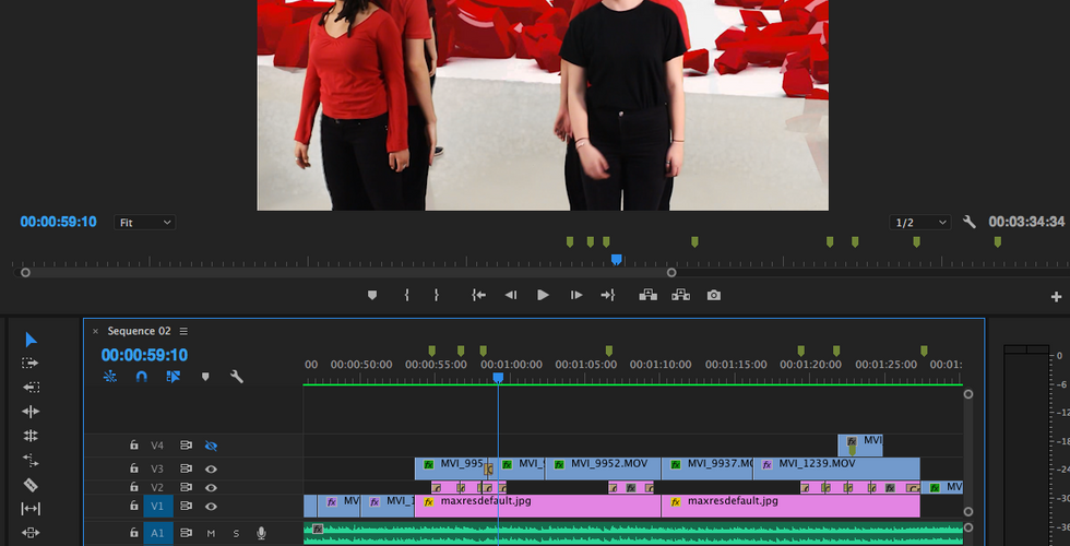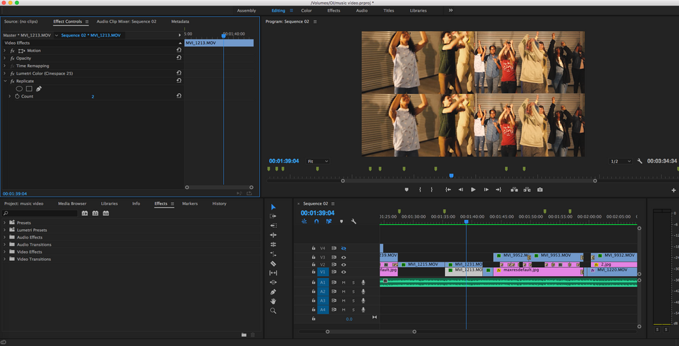 The editing was the hardest part. I had so many videos and I had no idea where to start from as the song starts with an intro and we hadn't decided anything with all the big group about what to put for it. However I divided the clips into three folders, so that it would have been easier to find the clip I wanted. I edited my video using Adobe Premiere.